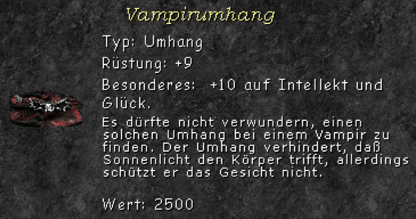 Anbei ein MMExtension Skript, welches dieses Detail behebt. Dank dem GrayFace Patch hinterlässt dieser Alte Vampir einen Vampirumhang.