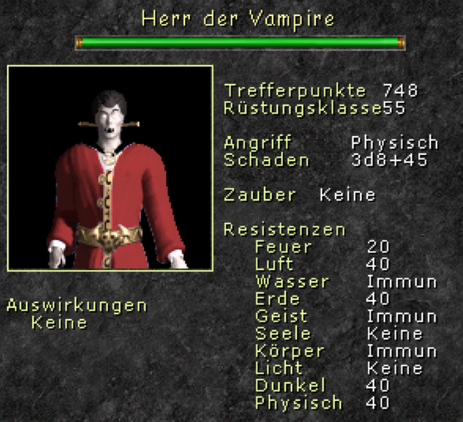 Die Eigenschaften des "Herr der Vampire" wurden verstärkt (siehe Skript unten), damit er sich von den anderen Alten Vampiren etwas unterscheidet.